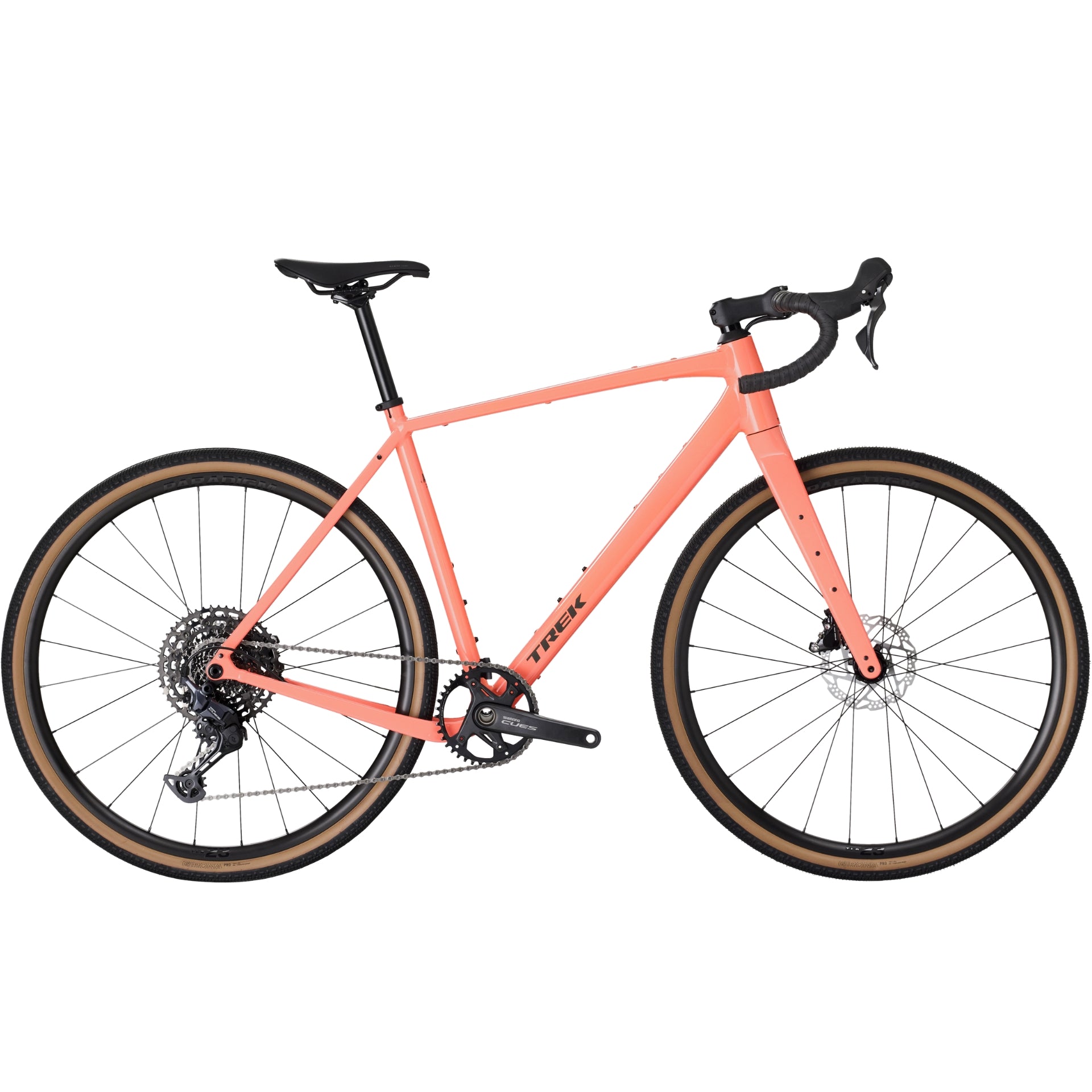 Bontrager Paradigm 23 Tubeless Ready -kiekot ja Bontrager Girona Pro 700x42 mm -renkaat tarjoavat hyvän tasapainon rullaavuuden ja pidon välillä. Pyörä toimitetaan tubeless-valmiina, mikä on käyttäjäystävällinen järkestelmä joka pienentää myös rengasrikkojen riskiä. Shimano CUES -hydrauliset levyjarrut tuovat varman ja ennakoitavan jarrutustehon kaikkiin sääolosuhteisiin. Alumiininen ohjaamo Blendr- yhteensopivuudella ja 27,2 mm satulatolppa pitävät ajon mukavana pitkilläkin ajopäivillä.