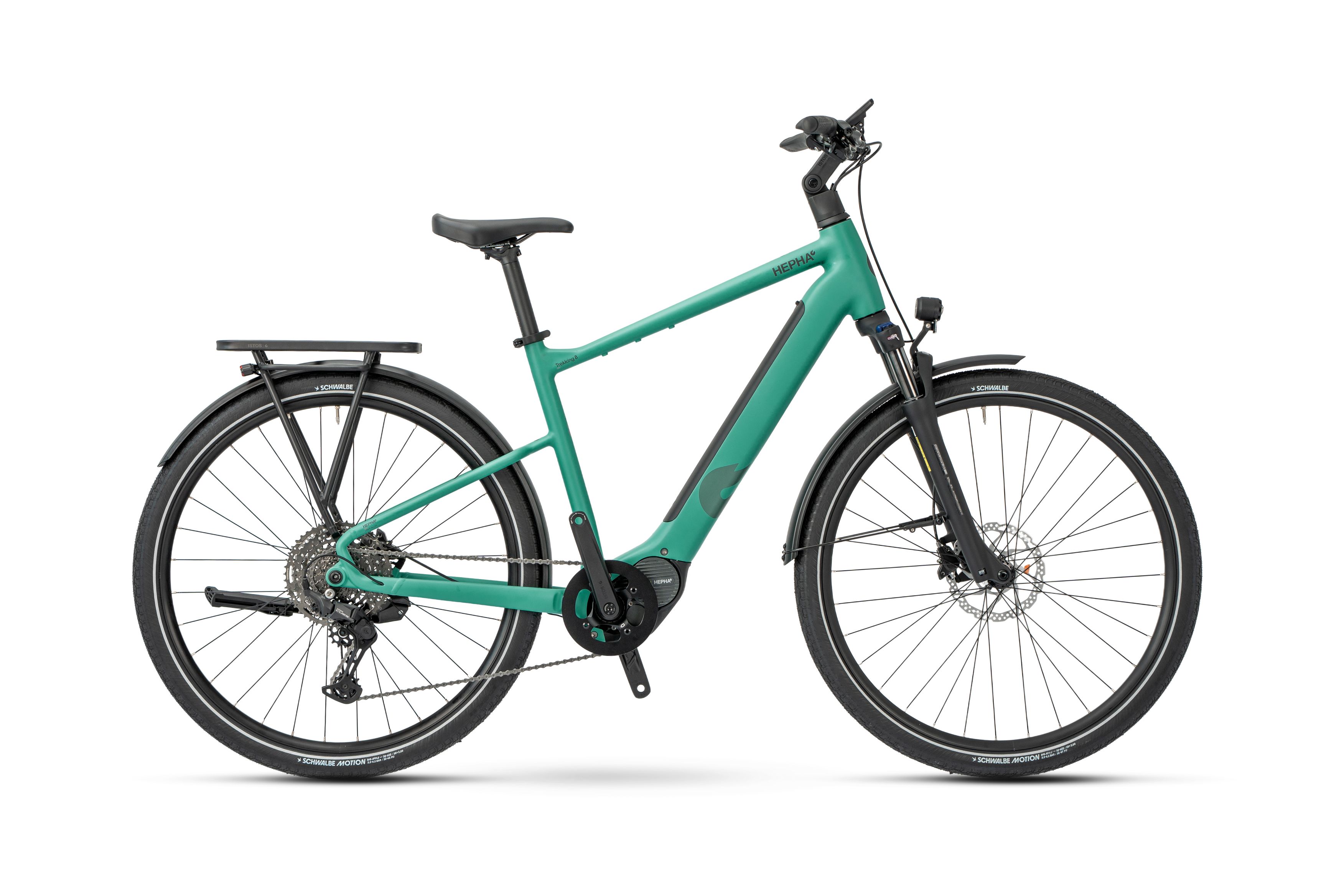 Hepha Trekking 8 Long Range on saksalainen sähköpyörä, jossa yhdistyvät 100 Nm moottori ja 600 Wh:n akku. Pehmeä joustohaarukka, 10-vaihteinen Shimano-voimansiirto ja kattava varustelu tekevät siitä täydellisen valinnan työmatkoille, arkeen ja pidemmille retkille.
